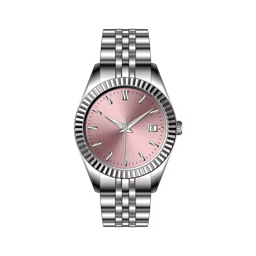 This watch with a pink dial is as soft as a blooming cherry blossom, and the elegant color exudes a delicate luster like mother-of-pearl under the light. The slender rose gold hands pass over the satin-finished dial, and the crocodile-patterned belt in the same color is both romantic and mature, and a glance at the wrist will create gentle ripples.