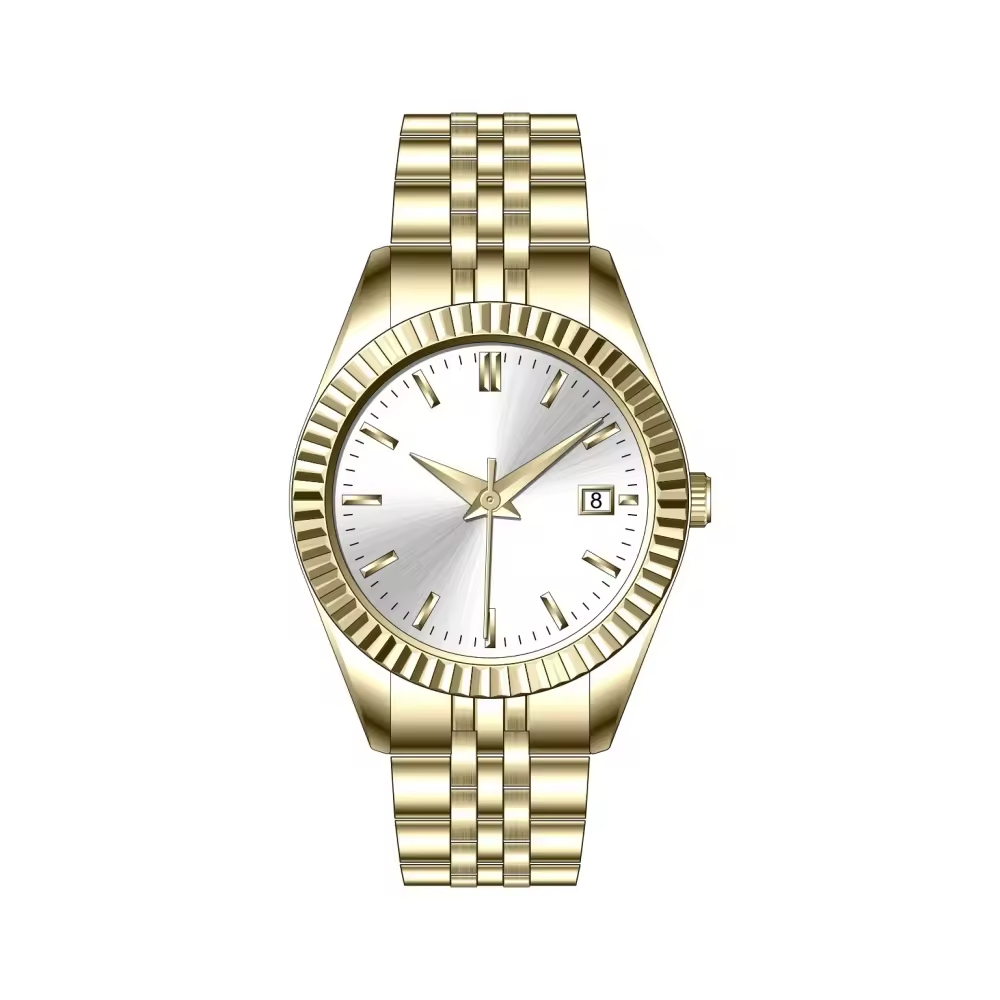 High Quality Women Pink Dial Fluted Bezel Custom Small Stainless Steel Watch for Women