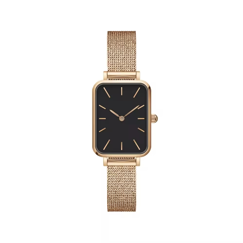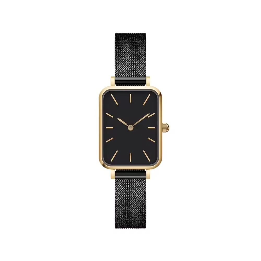 High Quality Rectangle Watch Mesh Strap Women Gold Minimalist Ultra Thin Watch